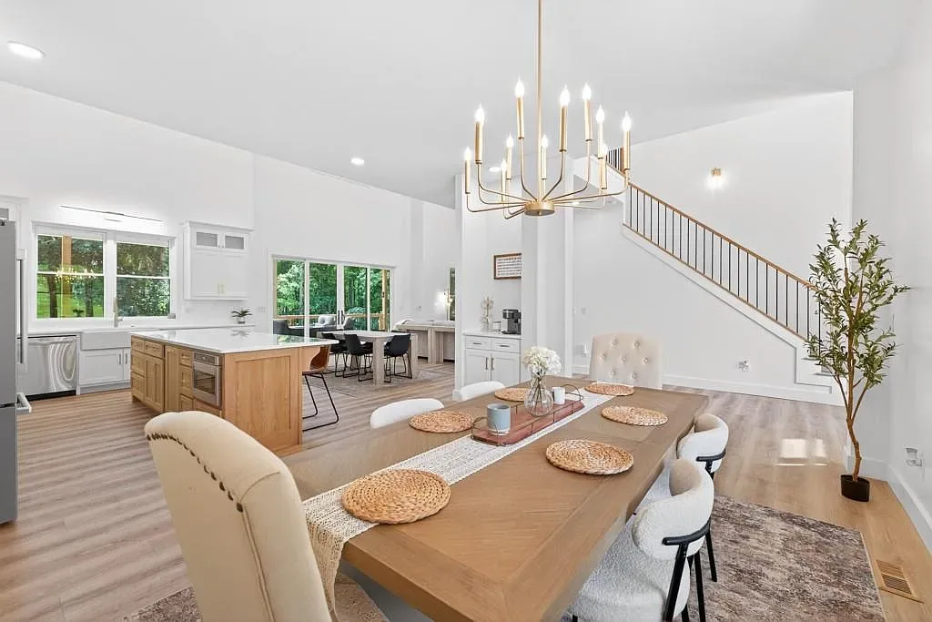 ¡Ubicación, ubicación, ubicación! Esta casa principal, construida a medida, se encuentra en el codiciado distrito escolar de la ciudad de Buford, ¡con la ventaja adicional de impuestos más bajos del condado de Hall! Ubicada en un terreno privado de 1.15 acres y apartada de la carretera con una entrada pavimentada de 350 pies, esta propiedad única ofrece privacidad y comodidad, a solo unos minutos del lago Lanier, escuelas, tiendas, restaurantes, el centro de Buford y la I-985. Al entrar en la planta principal, le reciben altos techos de 10 pies que crean un ambiente luminoso y abierto. Un comedor formal crea el ambiente perfecto para recibir invitados con elegancia, mientras que el corazón de la casa, una enorme cocina de diseño, cuenta con impresionantes encimeras de cuarzo, una isla de gran tamaño de 11 pies, una estufa de gas de 8 quemadores y una despensa amplia con gabinetes a medida. Justo al lado de la cocina, encontrará un práctico recibidor y un medio baño. La sala de estar es realmente espectacular con sus techos abovedados de 6,7 metros, una impresionante chimenea de suelo a techo y estanterías empotradas a medida. La suite principal, ubicada en la planta principal, es un refugio privado con acceso directo a una espaciosa terraza cubierta de 66 metros cuadrados. El baño ofrece una experiencia de spa con una bañera extragrande, una enorme ducha a ras de suelo con cabezales dobles y altavoz Bluetooth integrado, y un amplio tocador doble. También en la planta principal se encuentra una oficina en casa de elegante diseño con armarios empotrados a medida, ideal para quienes trabajan a distancia. El lavadero está estratégicamente ubicado en la planta principal e incluye un práctico conducto para la ropa sucia desde la planta superior. En la planta superior, encontrará cuatro amplios dormitorios, cada uno con acceso a dos baños completos con duchas de suelo a techo. Una amplia sala adicional ofrece infinitas posibilidades, desde una sala de juegos hasta una sala de cine o una suite de invitados. El sótano con luz natural, sin terminar, añade 198 metros cuadrados adicionales y ya está preparado para un baño completo y un bar o una segunda cocina, lo que le permite ampliar el espacio habitable según sus necesidades. La vida al aire libre es igual de impresionante, con una terraza trasera cubierta de 66 metros cuadrados con vistas a un amplio y plano patio trasero, perfecto para recibir invitados o para añadir una piscina. La casa también cuenta con un calentador de agua sin tanque y un garaje doble de 88 metros cuadrados para tres coches con suelo de epoxi nuevo. Esta es una oportunidad única para poseer una casa única en el Distrito Escolar de la Ciudad de Buford, reconocido a nivel nacional. Con un diseño cuidado, una construcción impecable y una ubicación ideal, esta casa lo tiene todo. ¡Venga a verla antes de que se agote!